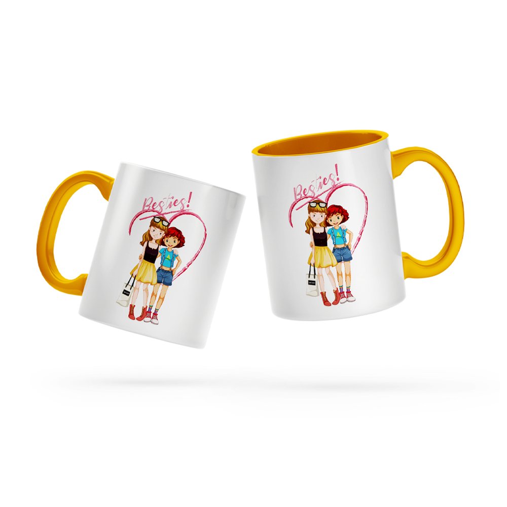 Additionally, the cute “Besties” illustration and bold color accents make this mug visually appealing and perfect for gifting on Friendship Day, birthdays, return gifts, or surprise moments. As a result, it becomes both a functional item and a memorable keepsake Customized Best Friends Mug.