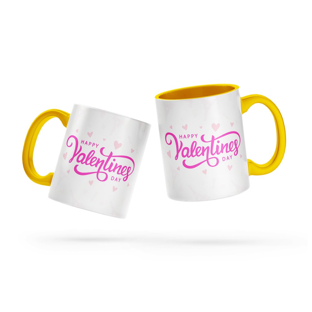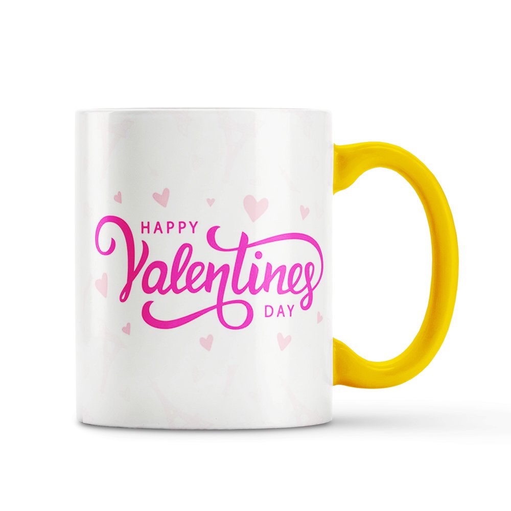 Happy Valentine’s Day Printed Mug | Romantic Gift with Yellow Handle