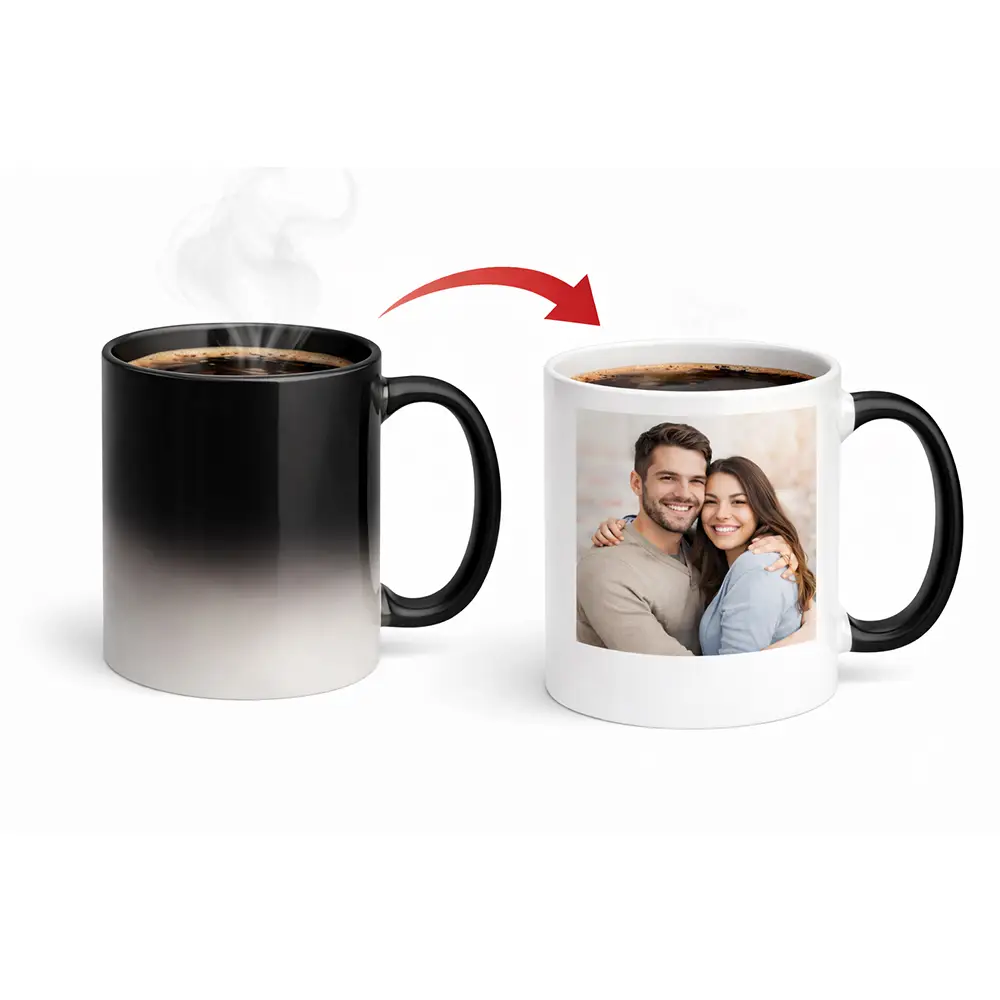 We craft this mug using premium ceramic material and advanced heat-sensitive coating technology. At room temperature, the mug appears in a solid dark color, keeping the design hidden. When you pour hot tea, coffee, or milk into the mug, the heat activates the coating and reveals the personalized print beautifully. This magical transformation instantly delights the birthday person and makes the moment unforgettable.