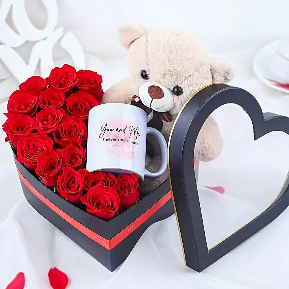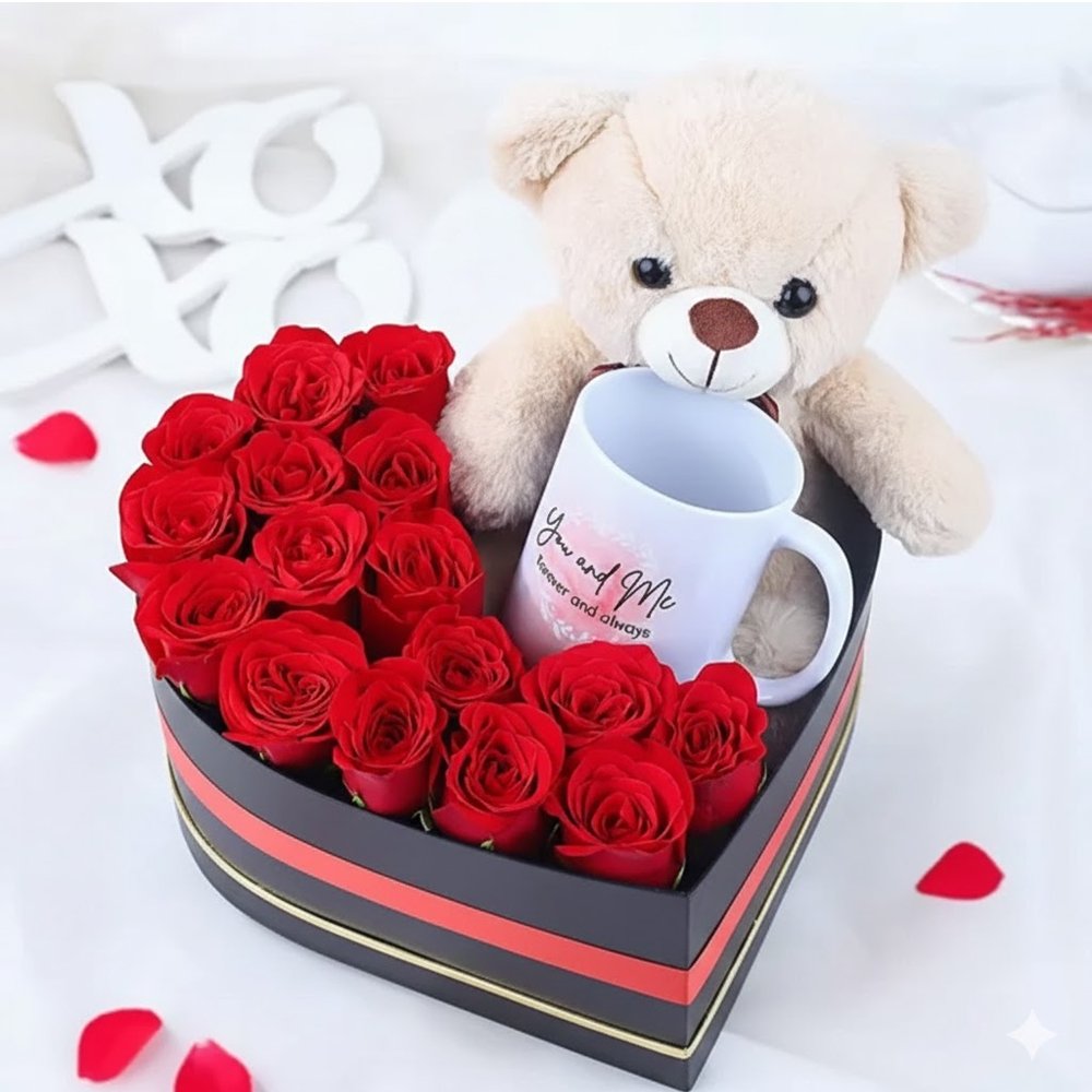 This gift box suits occasions such as birthdays, anniversaries, Valentine’s Day, proposals, surprises, and love celebrations. The combination of roses, teddy, and mug creates an emotional impact that words alone cannot express.